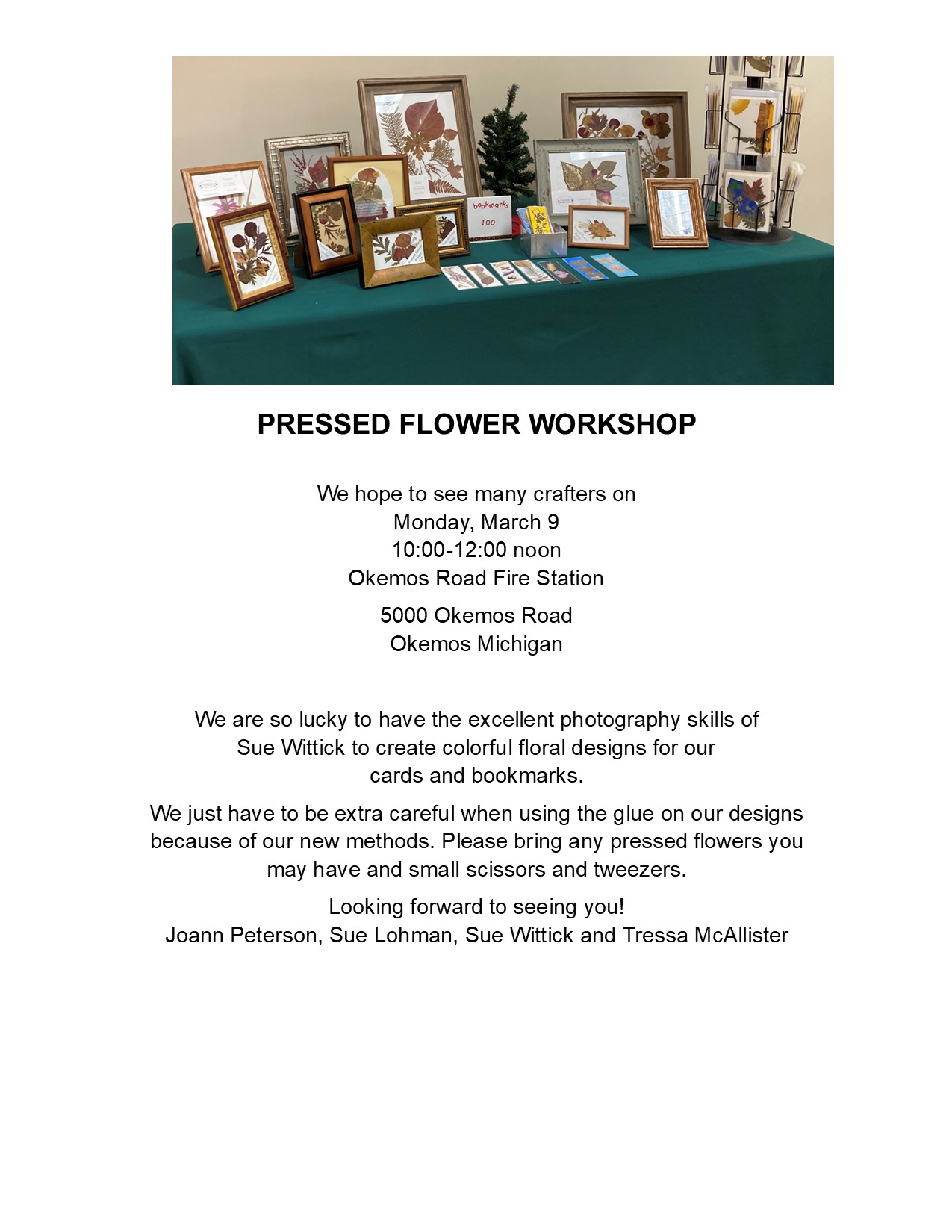 Please bring any pressed flowers you may have and small scissors and tweezers.